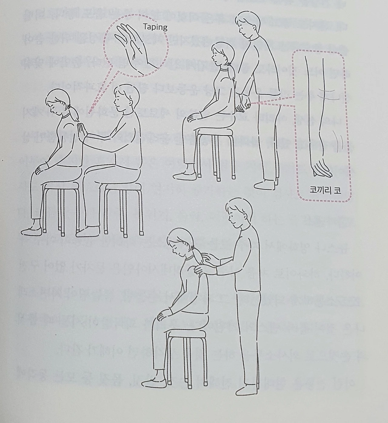 툭 툭 친다. 마지막으로 손바닥 전체로 어깨,
