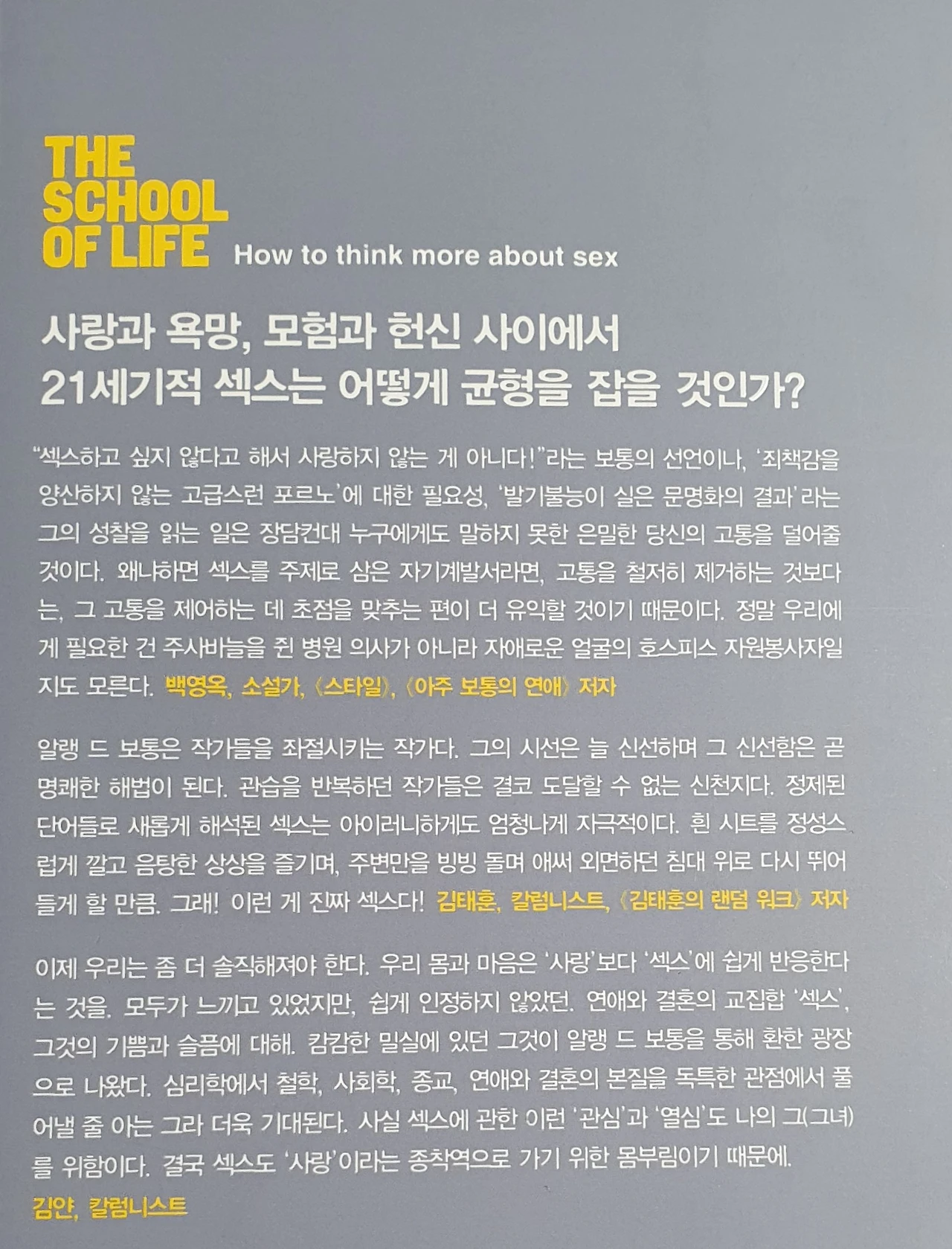 ...이제는 섹스에 대한 욕망과 사랑에 대한 욕망이 평등한 지위를 갖고, 도덕적 허식을