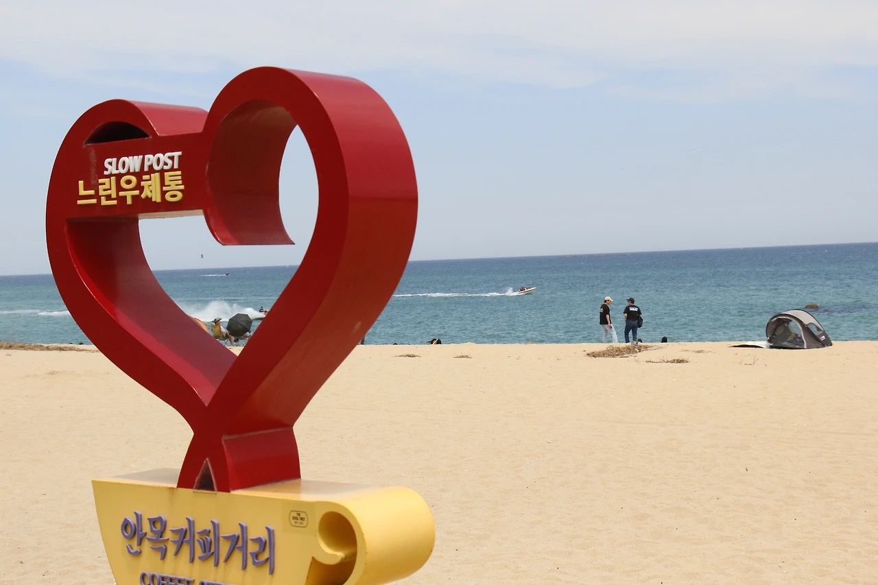 안목항 방파제를 걷다가 만난 붉은 등대는 또 어찌나 다정한지. 곁을 떠나지 못하고 한참을 등 기대어 본다. 누군가 타고 와서 세워 둔 자전거가 행여 외로울까, 짝꿍이 되어 주는 풍경. 안목항에는 특히 솔향이 은근하다. 안목해변을 두루 바라보며 배경이 되어 주는 무성한 소나무들이 건강한 피톤치드의 기운을 맘껏 선물한다. 근처에 솔향 수목원도 있다고 하니, 강릉에서 숲을 만날 수 있는 귀한 포인트가 아닐까 싶다. 그래서 솔향 강릉이라고 했던가. 청정한 소나무 향기와 커피에 취하고 푸른 빛 바다에 물드는 ‘치유의 공간’, 안목항에서 마음껏 힐링을 체험하고 다시 길을 나선다.