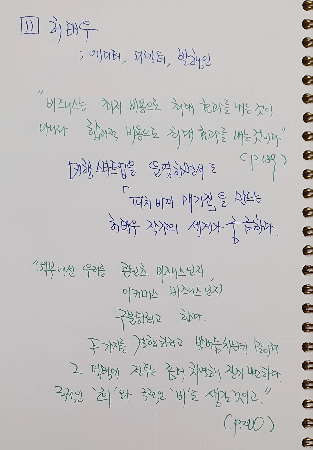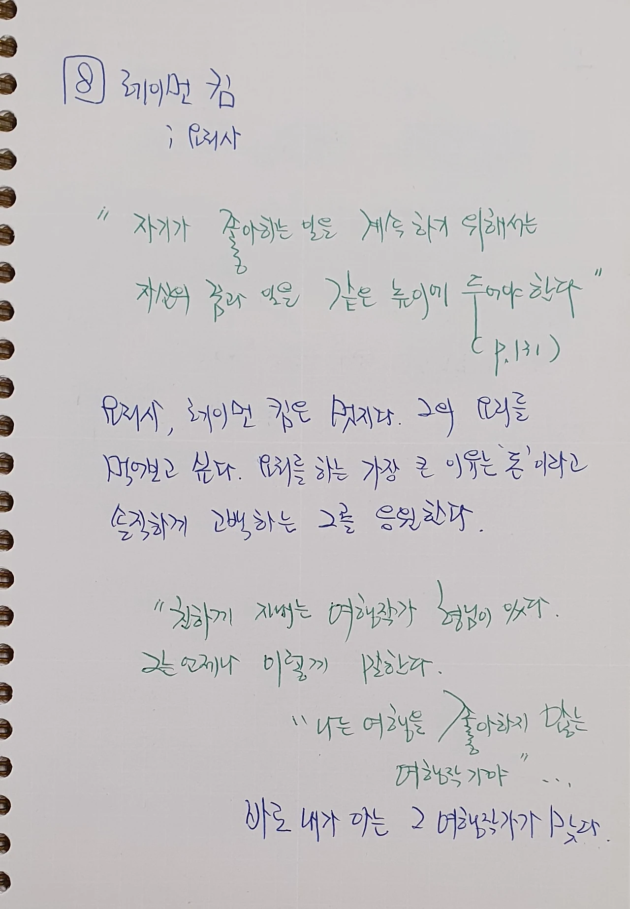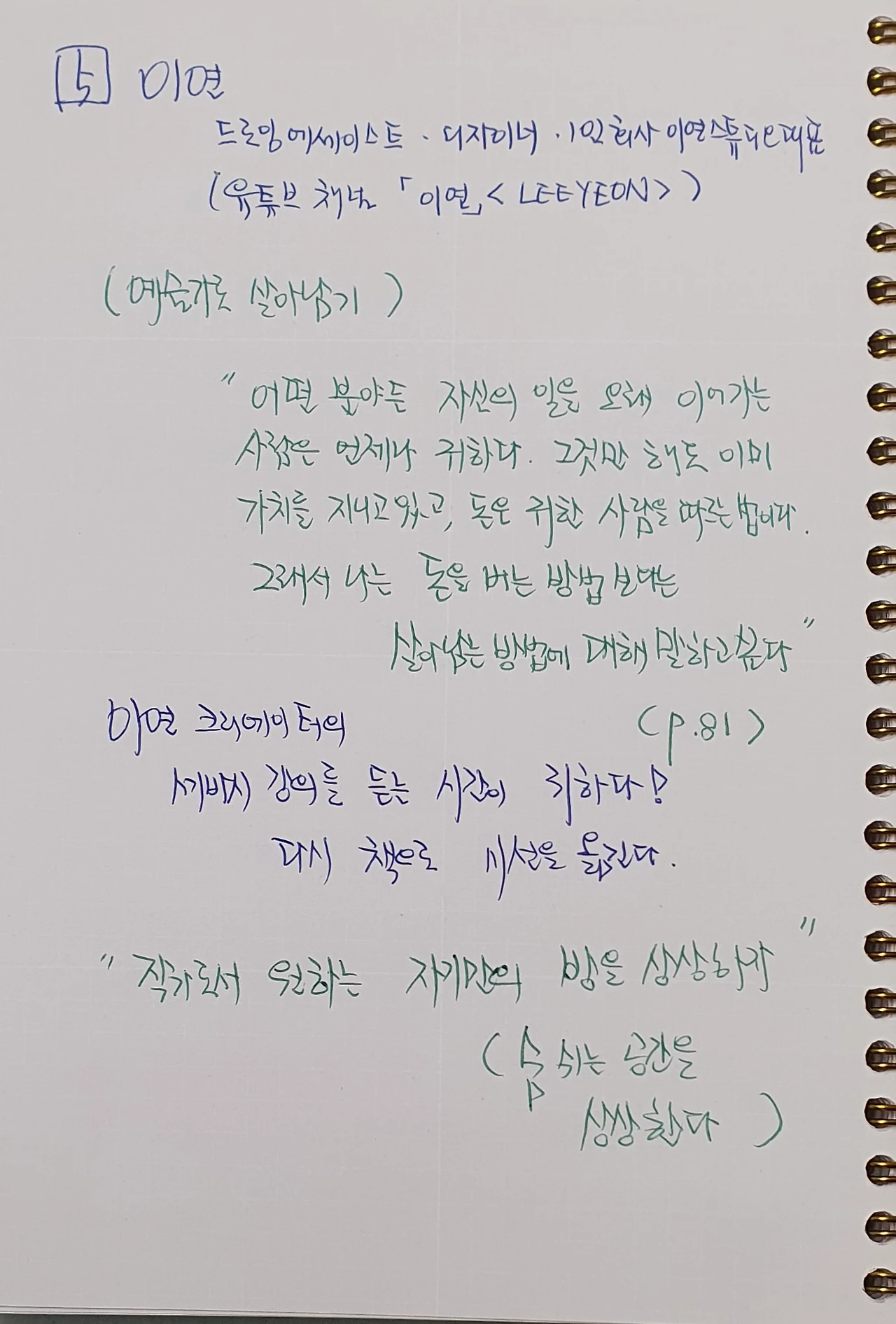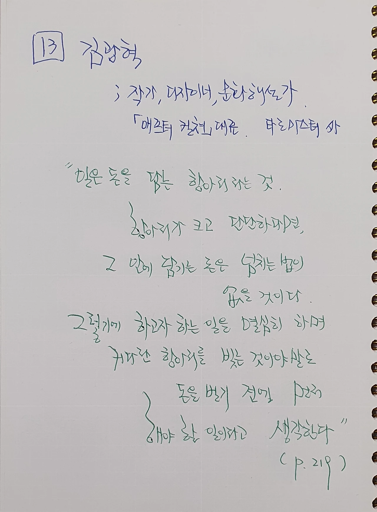 일은 돈을 담는 항아리라는 것. 항아리가 크고 단단하다면, 그 안에 담기는 돈은 넘치는 법이 없을 것이다. ... 하고자 하는 일을 열심히 하며 커다란 항아리를 빚는 것이야말로 돈을 벌기 전에 먼저 해야할 일이라고 생각한다.(p.219)