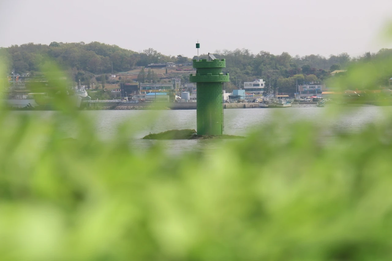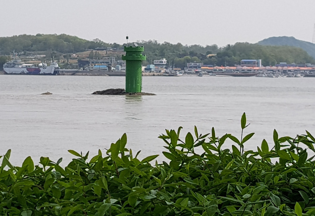 초록등표는 암초 위에서 마을을 바라보고 있는 중이었다. 바람결에 초록으로 흔들리는 잎새들이 등표의 아우라를 더욱 빛내준다.