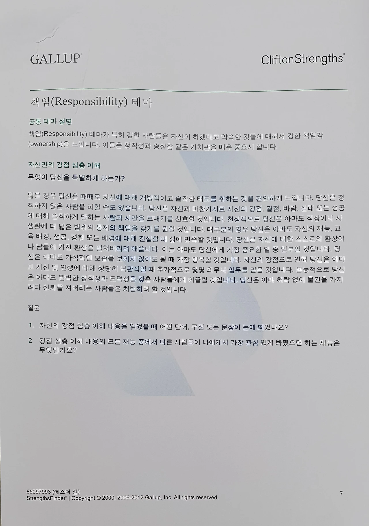 강점코칭을 받았다. 갤럽 강점진단을 하고,