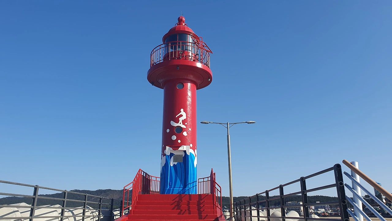 넘게 달려 만난 붉은 등대 앞에서 '안녕', 인사를 한다.
