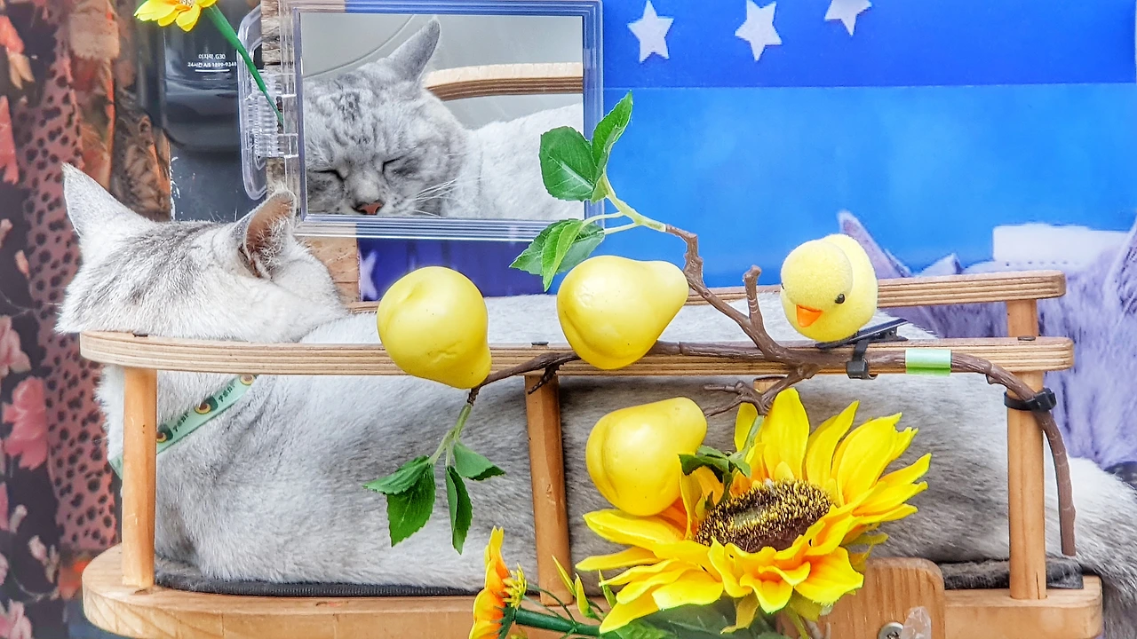 꼬리를 살랑살랑 흔들며 거울을