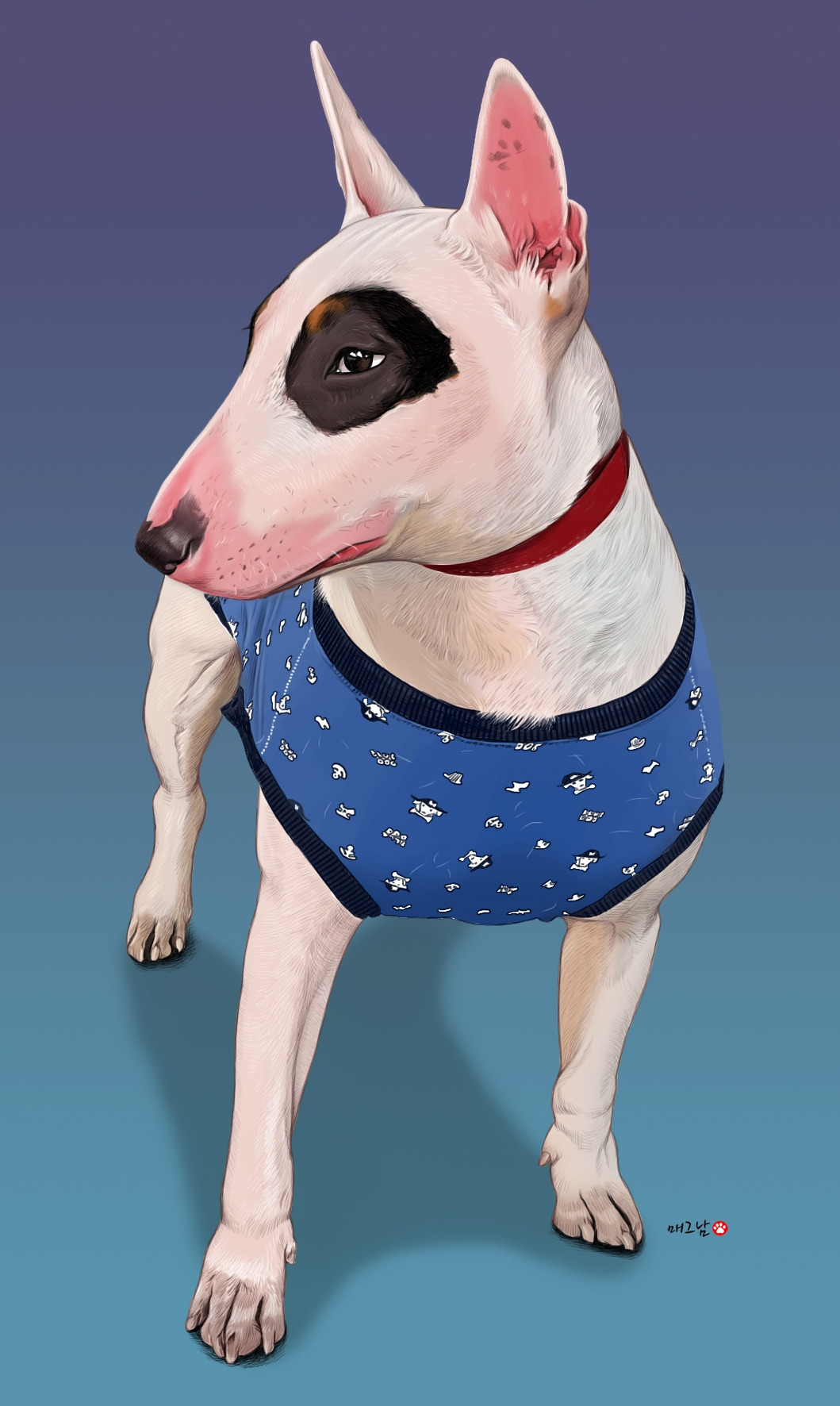 나는 개 세계의 검투사로 불리는 불 테리어입니다.