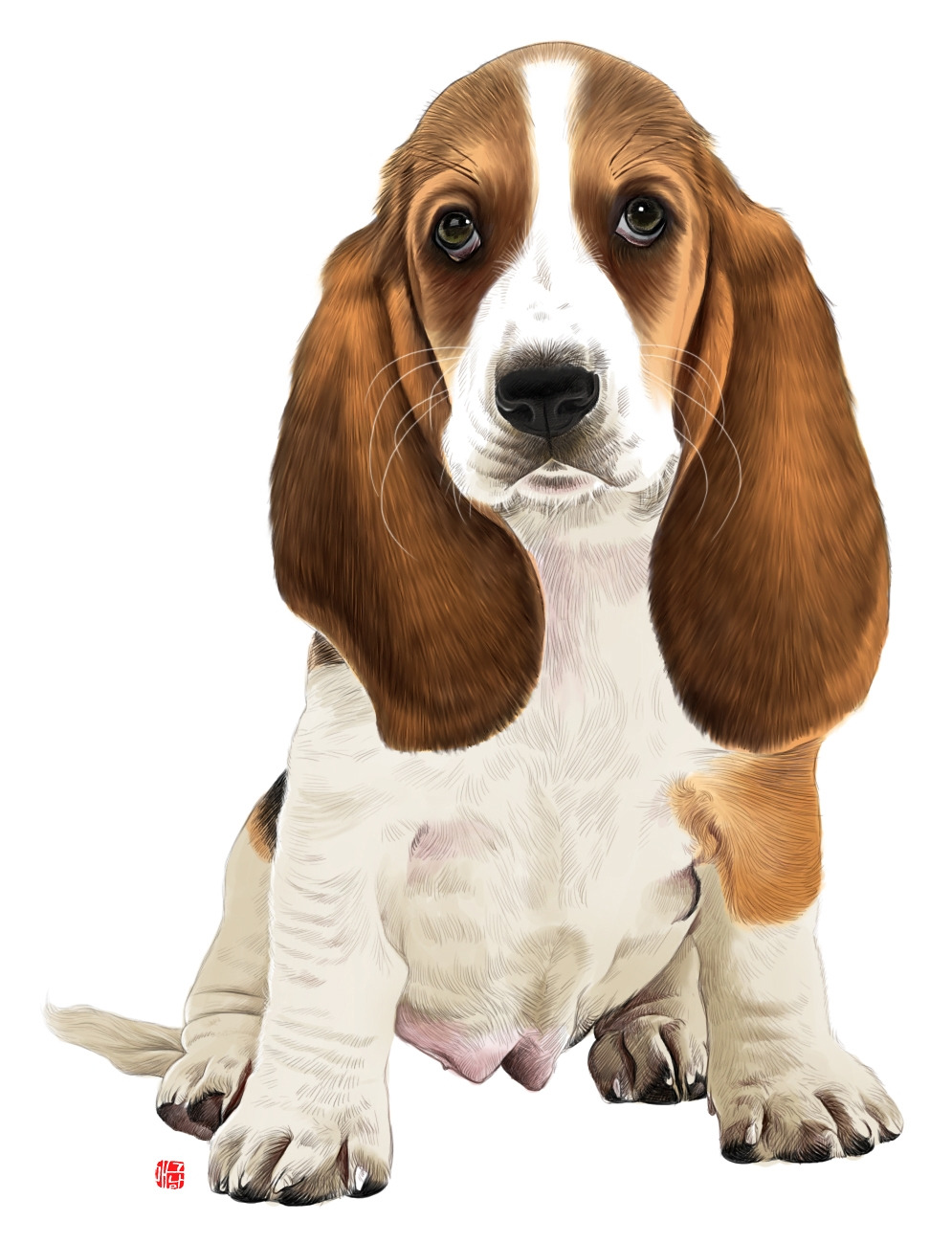 프랑스어로 ‘바스(bas)’는 낮다는 뜻으로 짧은 다리 때문에 바셋하운드라는 이름이 붙었습니다.