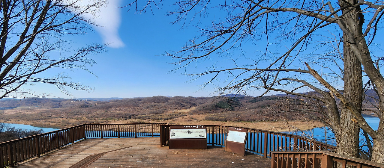 굽이굽이 가파르게 오른 길은 가파르게 내려가고 느리게 오른 길은 느리게 내려가고 그런 다음 다시 울퉁불퉁한 길을 걸으니 개안마루 전망대가 나온다. 개안마루 전망대에서 웅연과 임진강을 둘러보며 겸재 정선이 그린 <웅연계람>의 배경이라는 안내판을 읽는다.
