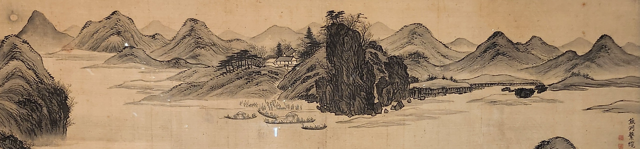 눈앞에 펼쳐지는 현실의 풍경과 18세기 그림 속의 모습은 아주 많이 다르다. 강 건너에서 이곳을 바라보면 어떠할지 궁금하다. 아직은 건널 수 없는 강이라 언젠가 이 강을 건너서 이 자리를 바라보는 날이 오길 기대한다. 강변의 정자와 마을은 저기쯤일 것 같고, 배를 기다리거나 양쪽 강가에서 횃불을 든 사람은 여기와 저기에 서 있었을 것 같고, 화면에 시커멓게 보이는 바위는 적벽을 상상하며 그린 것 같다.