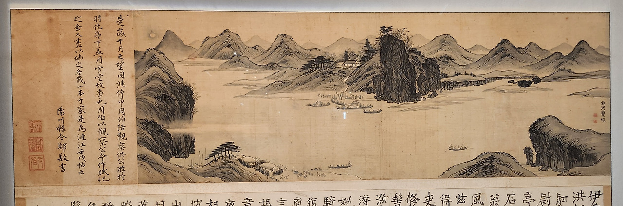 <연강임술첩(漣江壬戌帖)>은 겸재 정선이 임진강 웅연에서 뱃놀이하며 그린 <우화등선>, <웅연계람>이다. 여기에 경기관찰사 홍경보의 서문과 연천 군수이자 시인인 신유한이 글을 더했다.