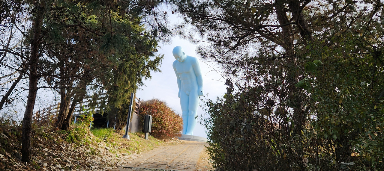 개안마루는 비무장지대, DMZ, 접경지, 군사분계지역, 휴전선, 북방한계선 등의 이름을 가진 곳이라 지도에서는 모자이크로 처리되어 있다. 늦가을, 그곳으로 가는 길은 멀고 가까움을 눈으로 짐작해야 한다. 연천 옥녀봉에 설치된 유영호 조각가의 그리팅맨을 찾으면 쉽다. 북쪽을 바라보고 머리를 숙여 인사하는 거인의 모습이다. 이곳에서 멀리 보이는 임진강의 갈대꽃이 흔들리면 산 중턱에서 오르락내리락하며 걸으면 된다.