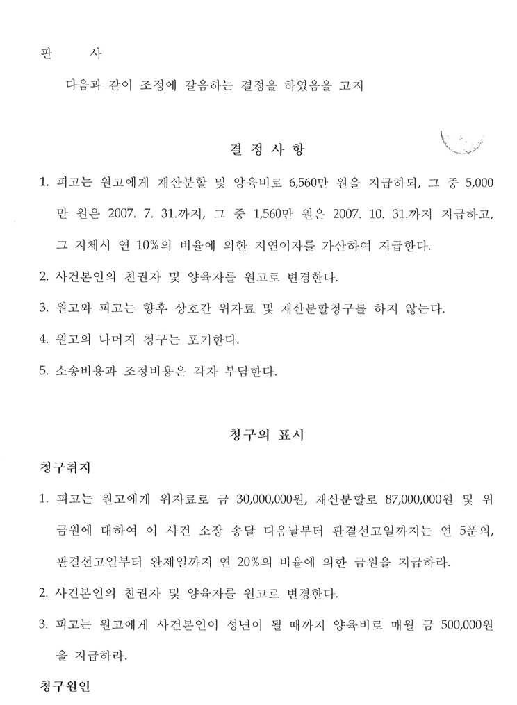 이 당시 사건 본인은 저였으며, 원고는 어머니, 피고는 부친이었습니다. 이 재판은 저에 대한 친권과 양육권을 모친께 이관하는 소송이었으며, 어머니께서는 구치소와 법원을 오가며, 1년 넘게 치열하게 투쟁하셨음을 밝힙니다. 제 증언으로 인해 어머니는 승기를 잡았고, 부친은 재산분할금을 조금이라도 줄이기 위해 재산 관련한 거짓 영수증을 증거로 삼아, 추가 소송을 하였지만 기각되었음을 밝힙니다.