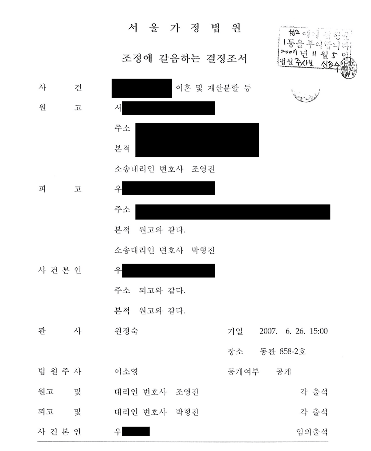 이 당시 저희 집은 성북동에 위치하였으며, 법원 판결 당시 매매가가 3억 원이 넘었음을 공표합니다. 지금 시세로 15억 원이 넘는 재산이며, 명의는 모친과 부친 모두 공동명의였습니다. 이에 따라 재산분할금이 사실상 지금 시세로 2억 6천만 원 이상이었으며, 위자료는 1억 5천만 원이었음을 밝힙니다. 저는 어머니께 재산 분할 소송에서 반드시 이겨, 해당 시세로 그대로 돌려드릴 것입니다. 또한, 부친의 공장 계약서 확인 경로를 취득하여, 작은 외삼촌께도 동일하게 공장 지분 최대 %로 돌려드릴 것입니다. 이를 선언합니다.