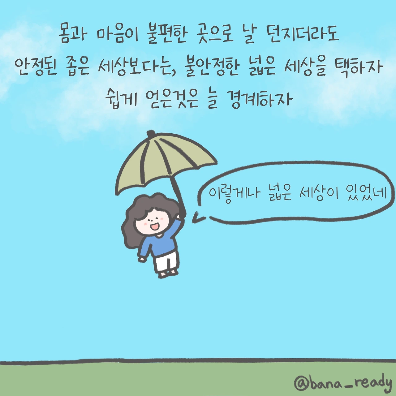 그 큰 손을 잡고 믿는 순간 나의 불안함은 해소될 수 있지만 세상을 보는 눈은 그곳에 멈춰서 버려요.