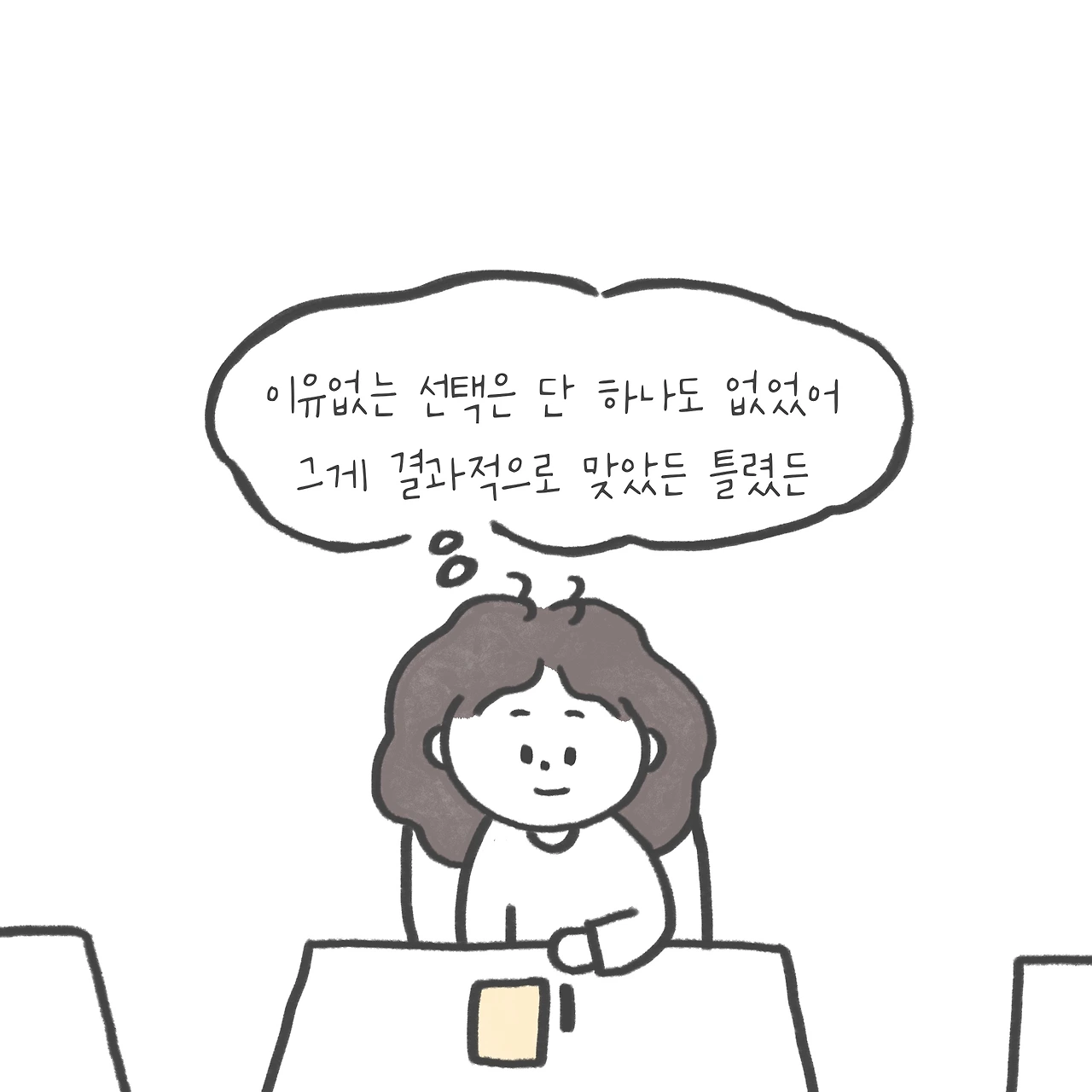 하지만 생각해보면 대부분의 후회가 비롯된 과거의 나의 선택 역시 그 당시 내가 그러한 선택을 해야겠다는 타당한 이유를 가지고 선택한 결과이다. 즉 당시에는 그렇게 하는 것이 맞다고 생각해 선택한 것이라는 거다. 그게 어리석은 선택이었든 섣부른 선택이었든 간에 나는 그러한 선택을 할만한 그때 당시의 타당한 이유가 있었던 것이다.