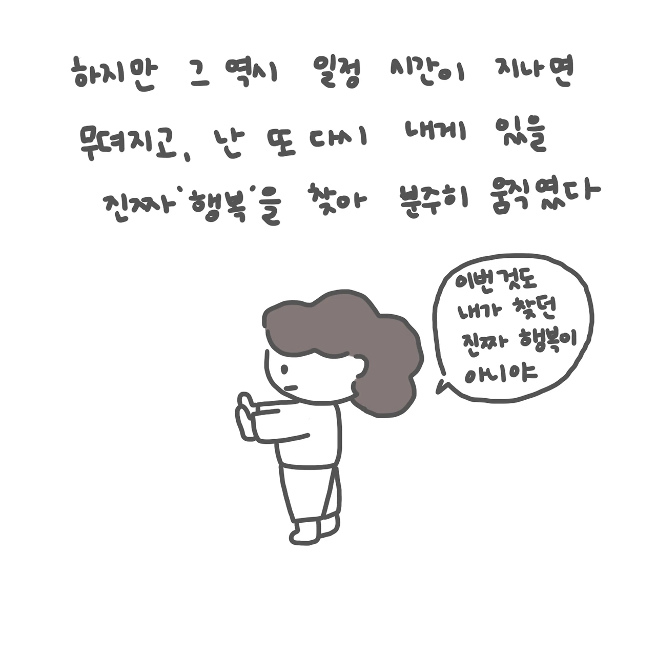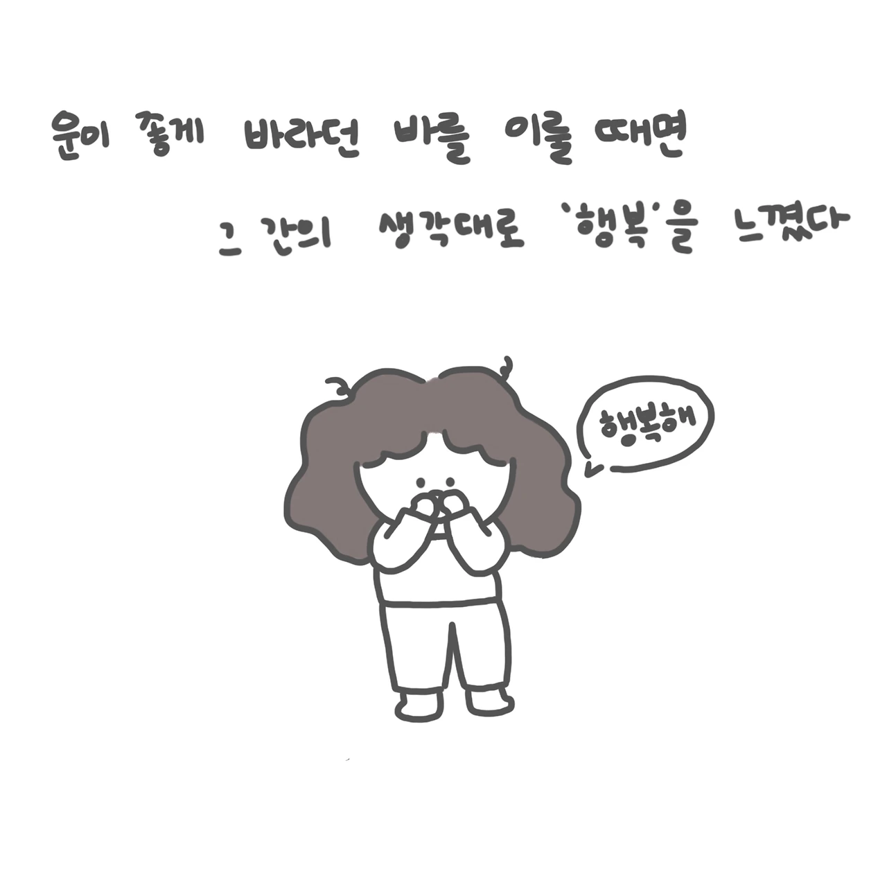 되돌아 생각해 보니 행복했던 순간의 공통점은 내가 그 순간에 완전히 존재했을 때였다. 지나간 시간의 아쉬움도, 다가올 시간의 걱정도 없이 그 순간을 딛고 온전히 서 있었을 때 난 행복을 느꼈다.