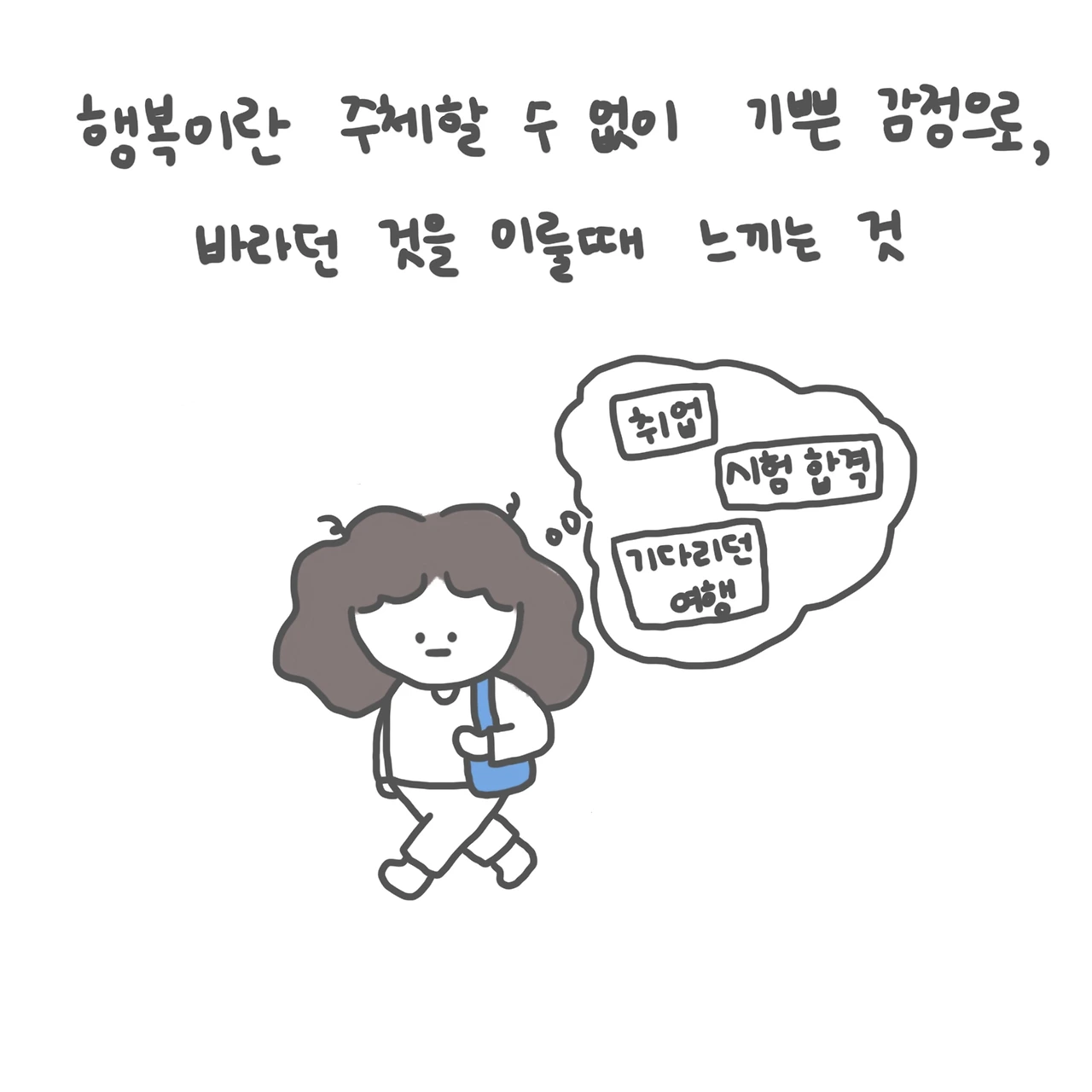 거창한 한 번의 행복을 바라며 오늘의 마음을 초조하게 두기 보단, 오늘의 마음을 지금 이 순간에 완전하게 두어 아름다운 것을 보고 아름답다고 느낄 수 있는 사람이 되어야겠다.