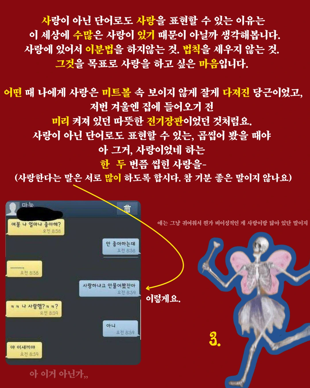 (사랑한다는 말은 서로 많이 하도록 합시다. 참 기분 좋은 말이지 않나요)