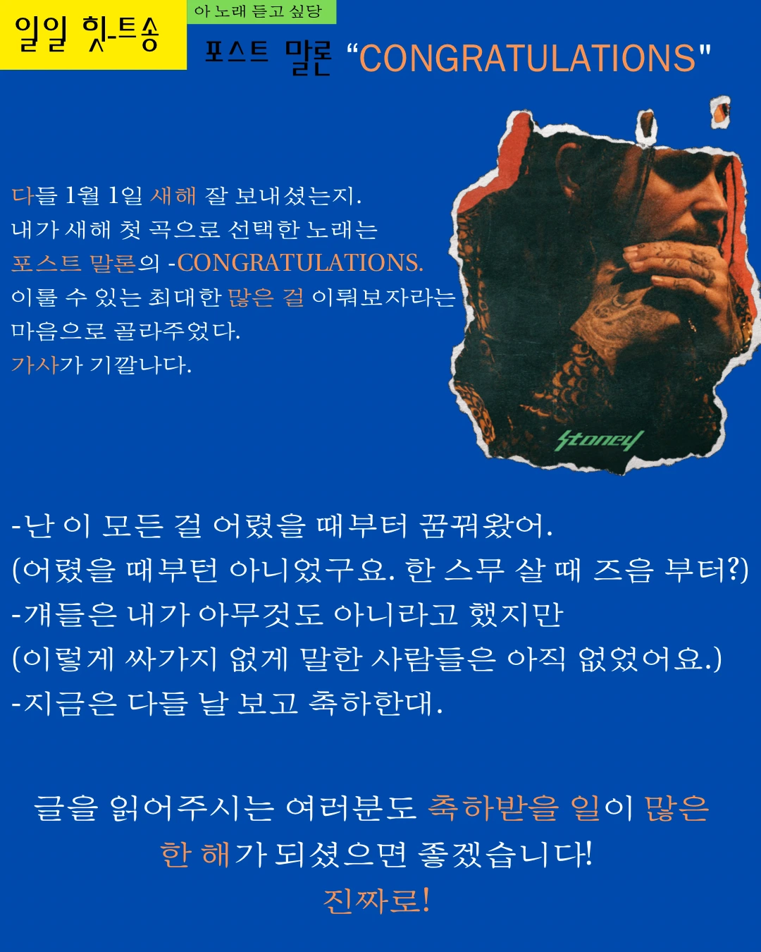 내가 새해 첫 곡으로 선택한 노래는 포스트 말론의 -Congratulations.