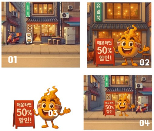 2번 장면의 배경을 제거하여 3번을 만든 후