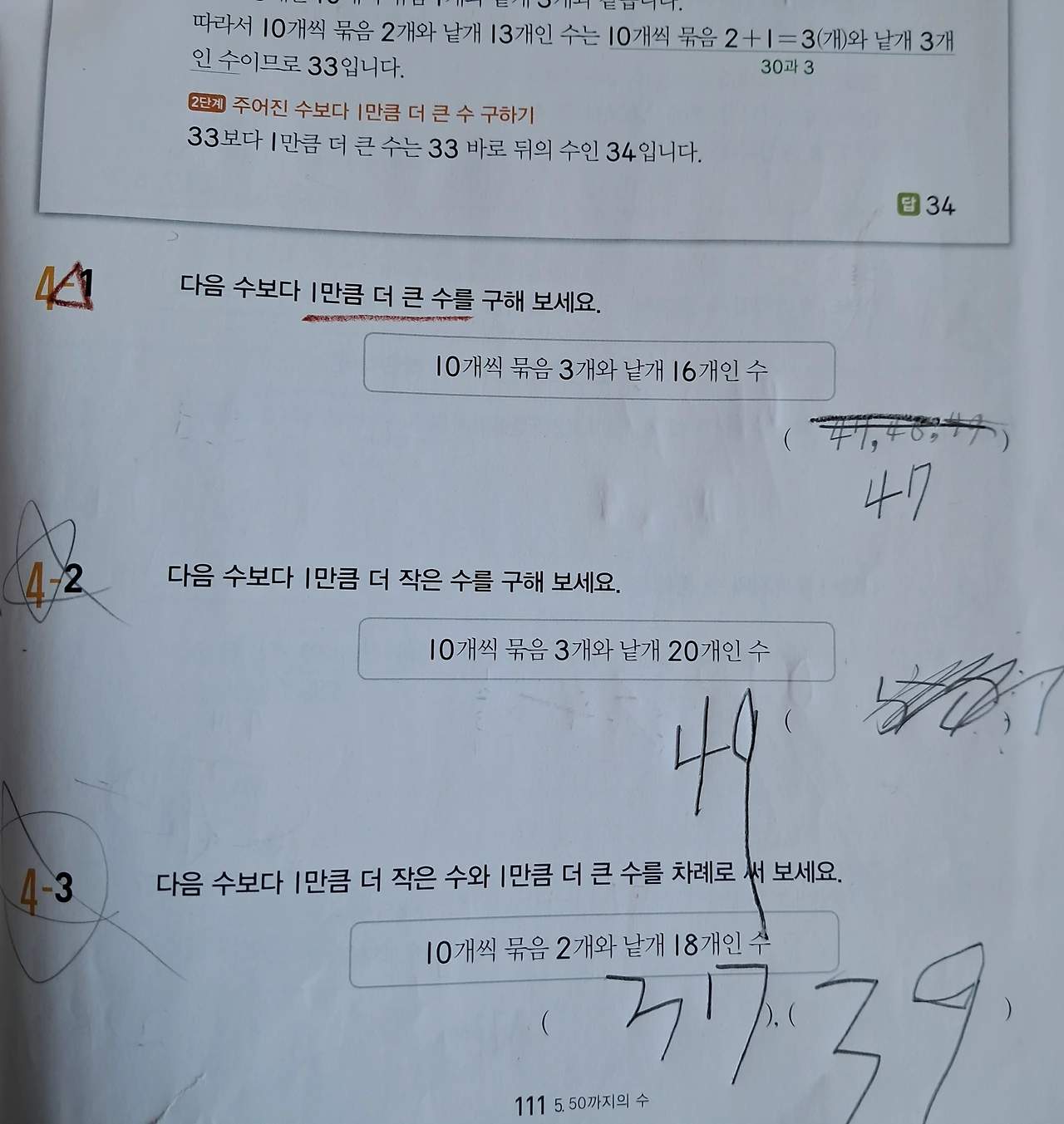 이거 1학년이 푸는 거야. 문제가 어렵지만 울이는 이제 2학년이니까 풀 수 있을 거야.