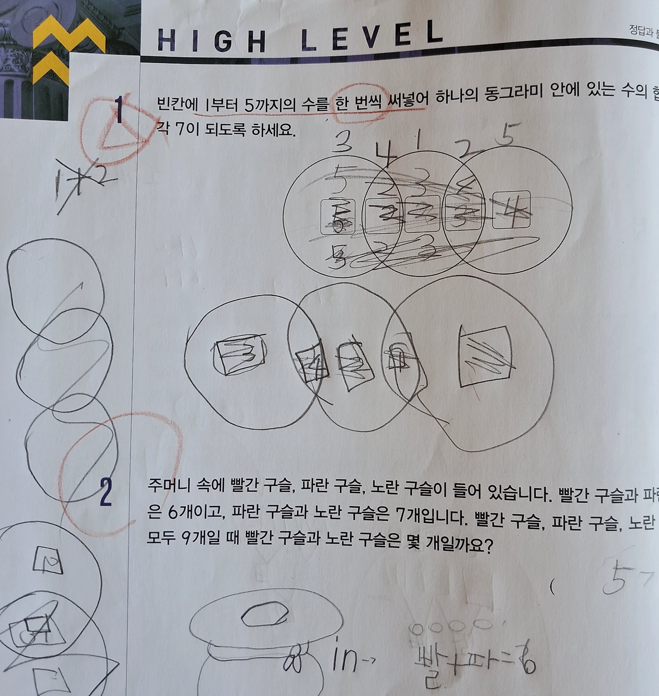 울이가 푼 최상위문제. 풀기 싫어서 꾹꾹 연필을 눌러서 답을 썼다.