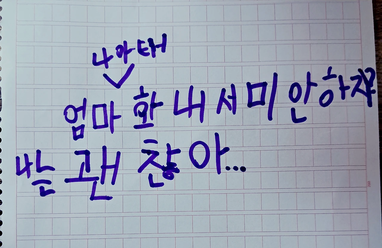 언니, '괜' 자 어떻게 써? '괜' 자 말이야.