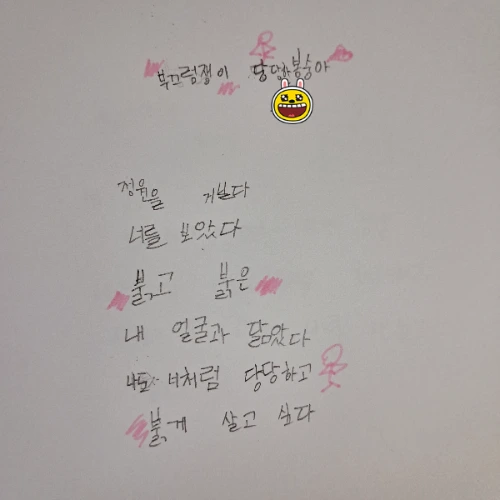 울이가 지난 여름에 지은 시. 연습장에 적은 글을 보다가 마음에 들어 사진을 찍어 두었던 게 생각이 났다.
