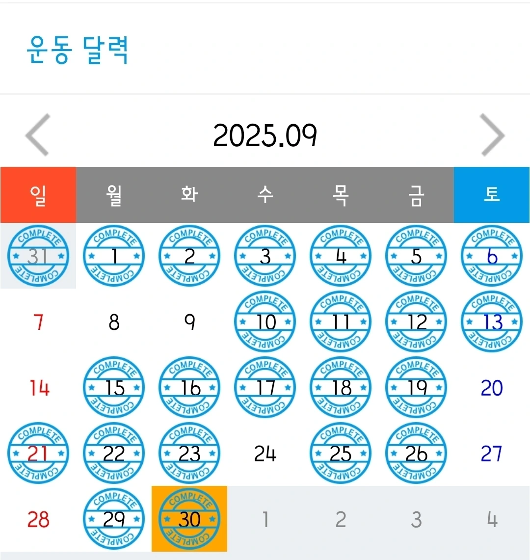 - 스트레칭 15일, 20분 운동 15일을 했다.
