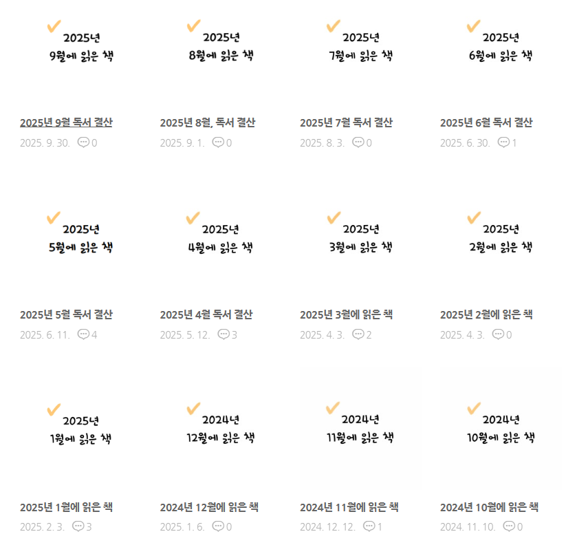읽은 책의 제목과 저자, 한 줄 소감을 남기고, 다음 달에는 어떻게 읽고 싶은지를 기록한다. 계획대로 하기보다 손이 가는 대로 책을 고르는 편이지만 이 기록들 덕분에 아주 조금은 책 편식이 줄어드는 것 같다.