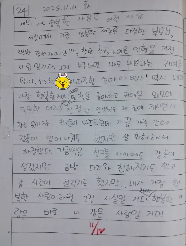 세상에서 가장 행복한 사람은 부모님, 친절한 형제 자매 남매, 착한 친구, 귀여운 인형을 가진 사람일 거다. 그게 누구냐면 바로 나♡