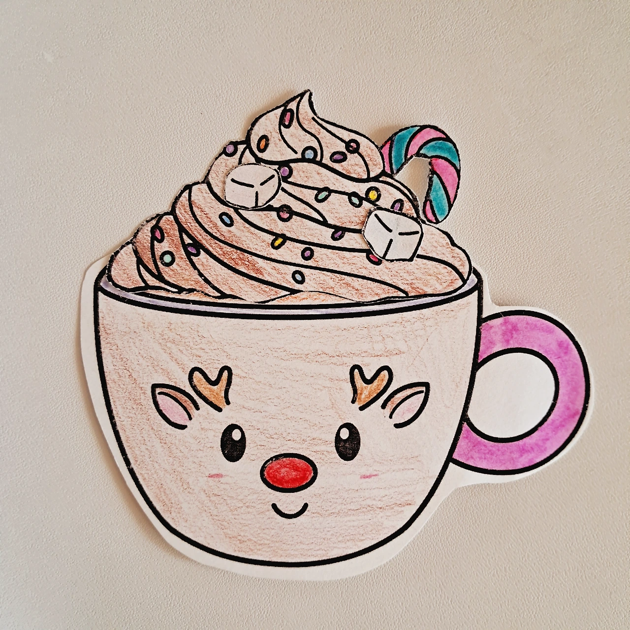 아! 라떼 크림은 아빠가 좋아하시는 초코 크림, 밑에 있는 음료는 엄마가 좋아하시는 커피로 칠했어요. 이 라떼와 제 사랑과 함께 따뜻하고 달콤한 겨울 보내세요~♡