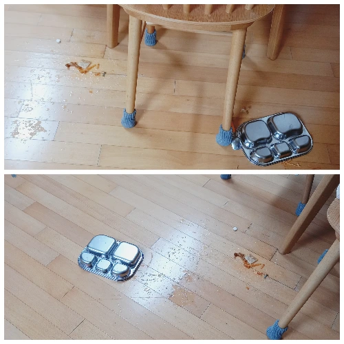 아이들의 수상한 웃음소리와 소곤거림. 무슨 일일까. 서둘러 주방으로 갔다. 식탁 아래에는 식판 2개가 엎어져 있고, 거기에 담겨 있던 반찬과 국물도 존재감을 뽐내며 바닥에 찬란하게 펼쳐져 있다. 아이들은 어쩔 줄 몰라 우두커니 서 있었다.