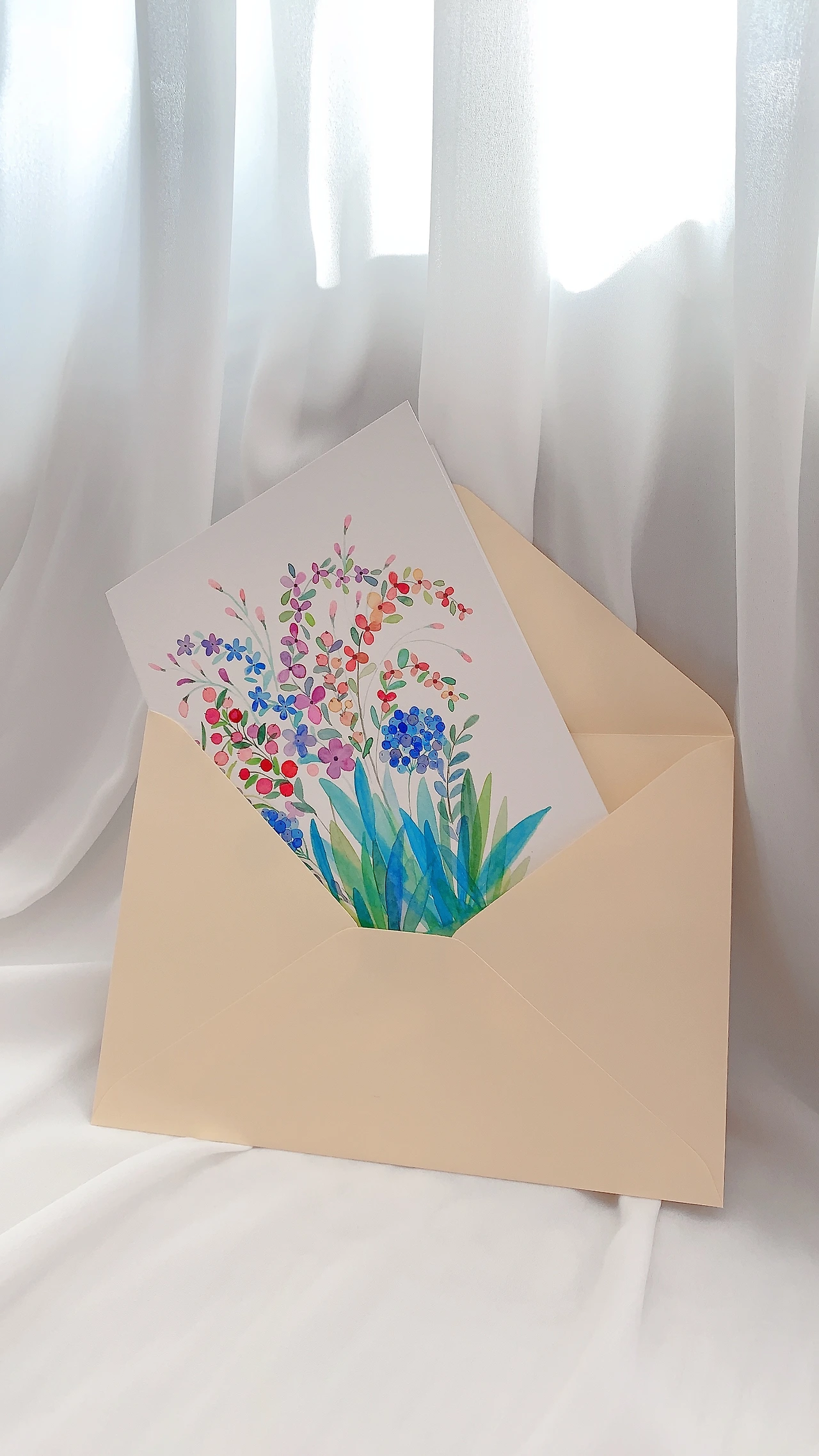 어둡고 긴 터널을 지나고 있다는, 힘든 시기를 견뎌내고 있다는 그녀와 가족들이, 깊은 사정이야 알 수 없지만 ‘잘 해결되기 바란다’ 던 바로 그 일이 바람대로 잘 흘러갔을 때, 그 순간에 기쁜 마음으로 ‘축하해요’ 카드를 전할 수 있기를 바라며. 가장 화려하고 반짝이는 빛이 가득한 축하 엽서를 마지막에 끼워 넣었다. 머지않은 시간에 이 엽서가 꼭 전해질 수 있기를 바라며, 연노랑 편지 봉투 안에 조심스레 마음을 쏟아부었다.