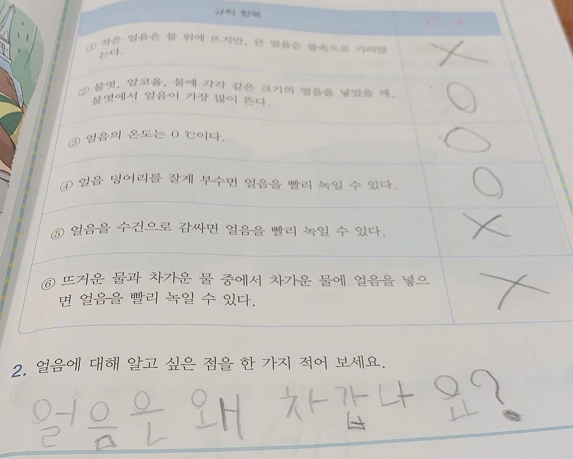 문제 4) 얼음에 대해 알고 싶은 점을 적어 보세요.