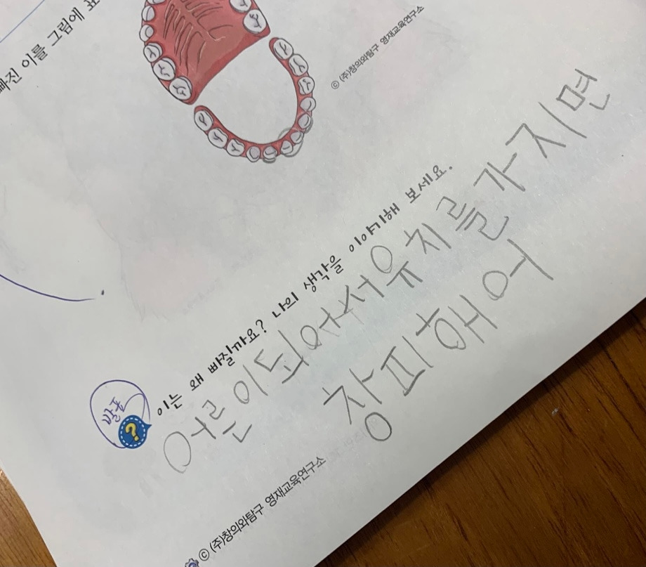 문제 1) 유치는 왜 빠질까요? 나의 생각을 이야기해 보세요.