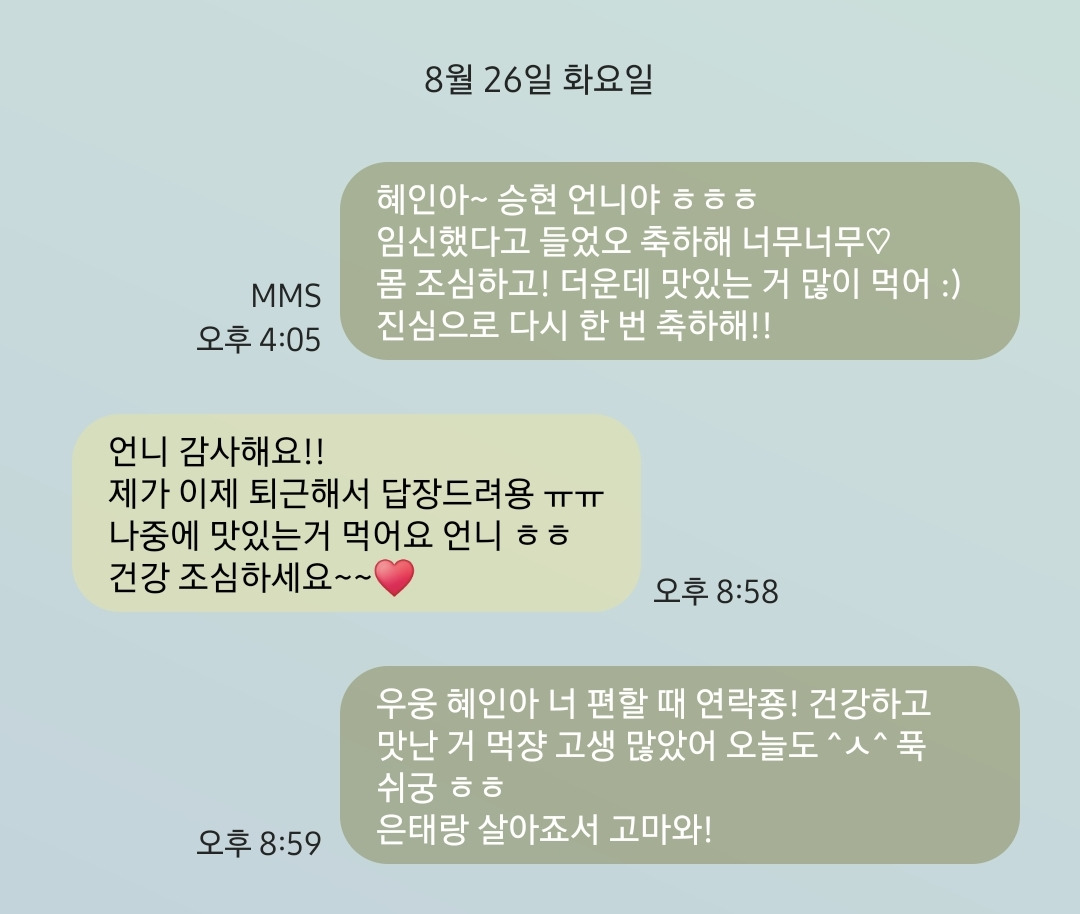 또 혜인이에게 문자를 보냈다.
