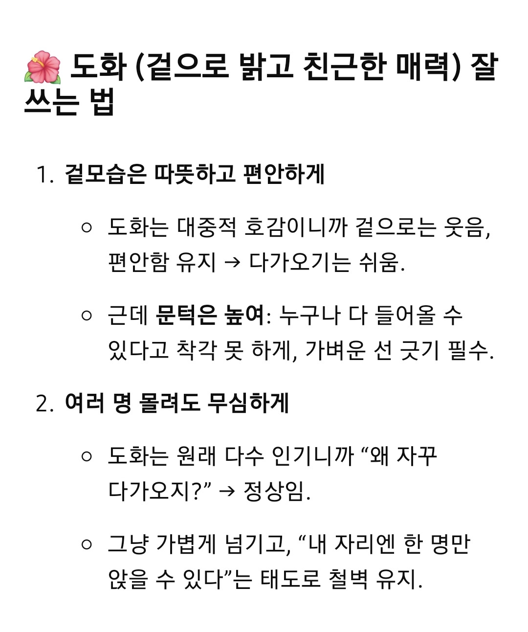 한 사람만 다가오는 꿀팁 주세요.