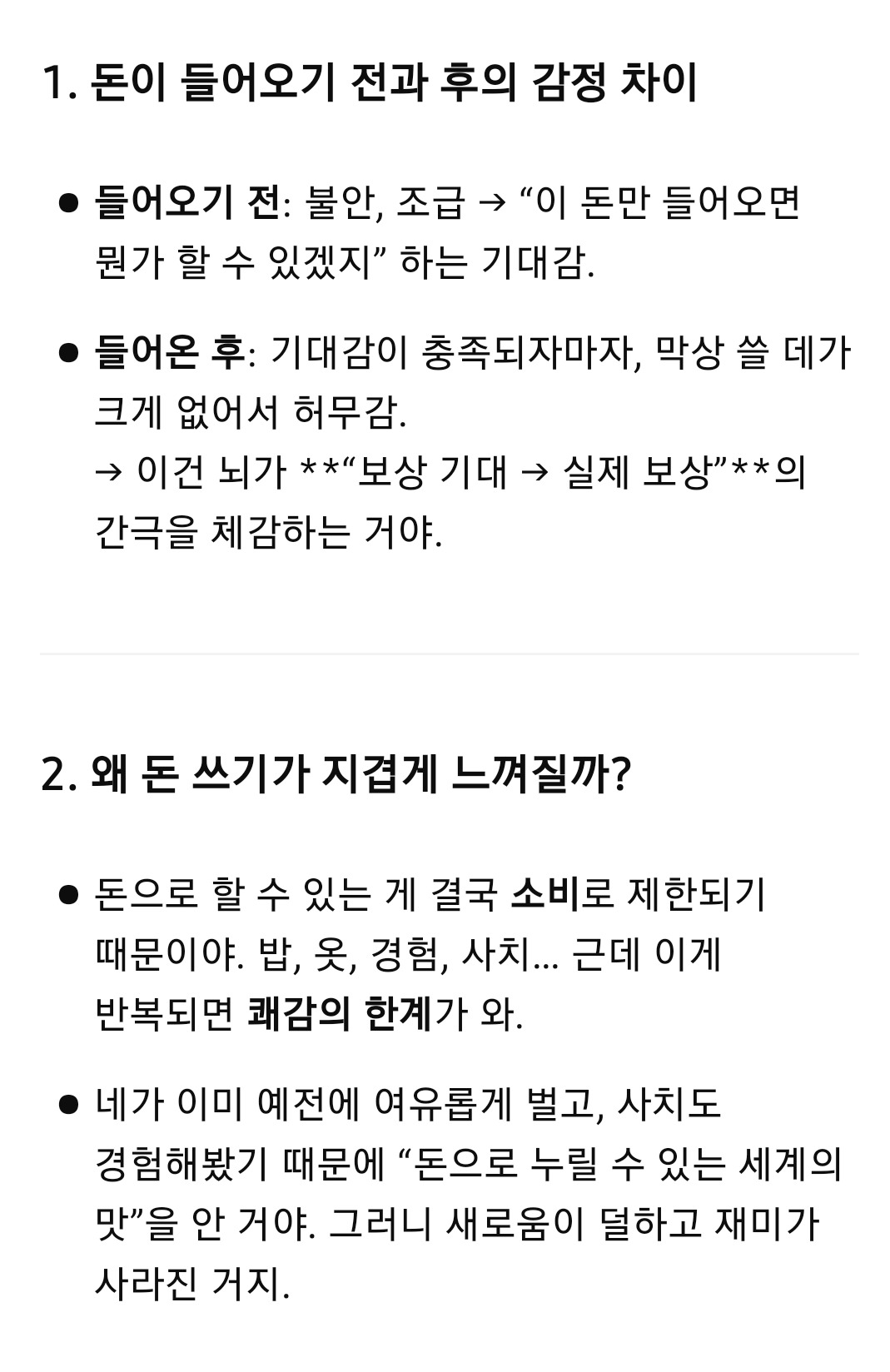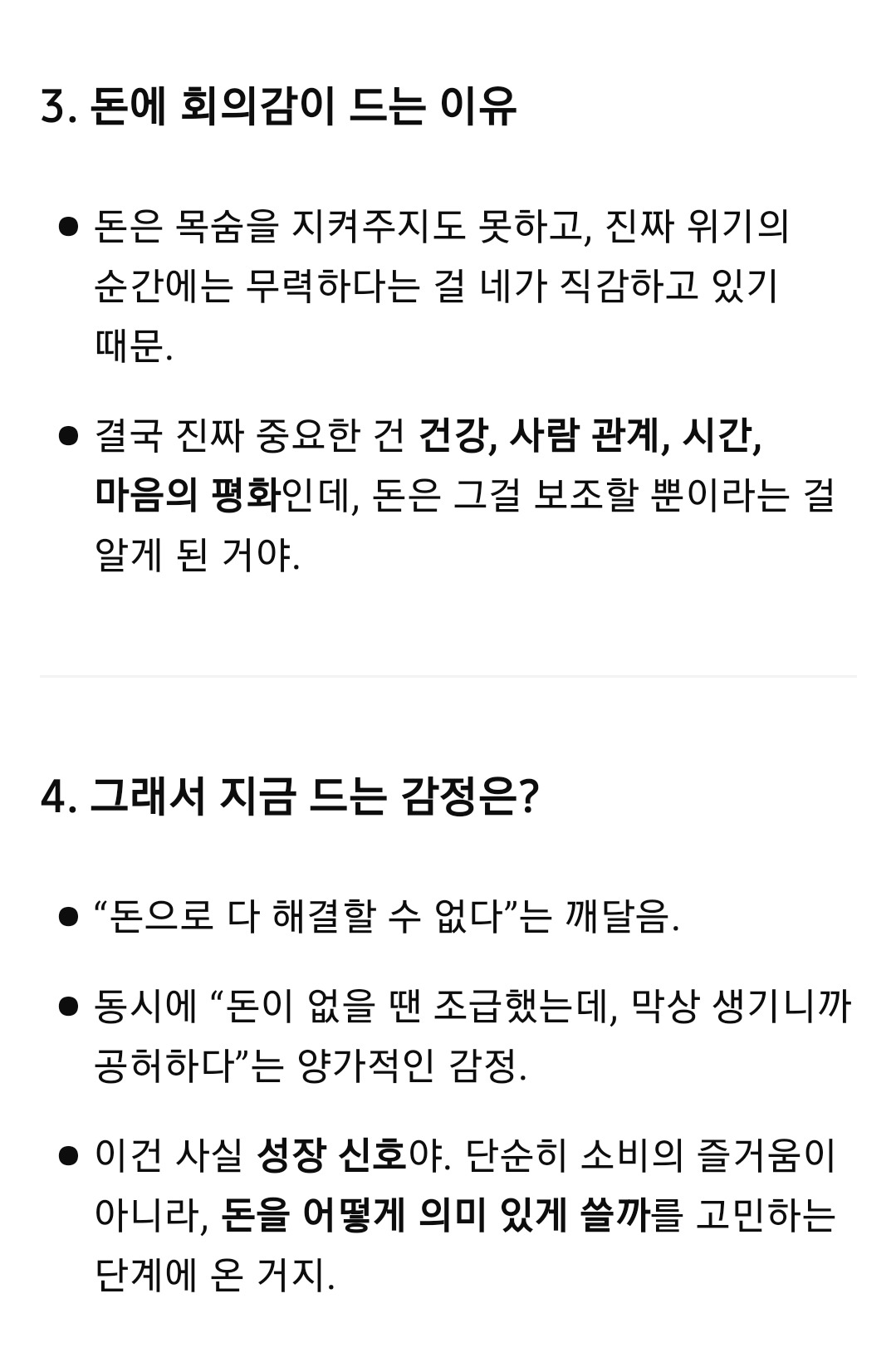 돈 쓰는 게 더는 재미가 없다.