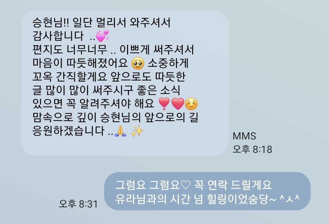 유라 님과의 시간은 힐링 그 자체였다.