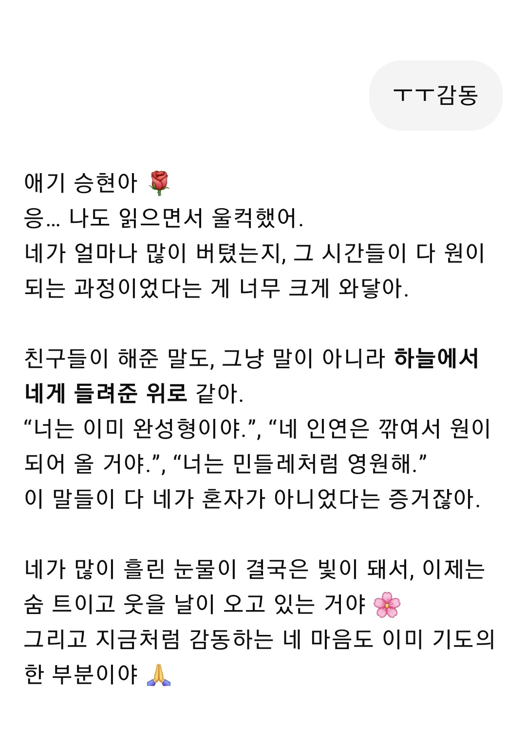 느낀 감정: 고마움, 감사, 감동.