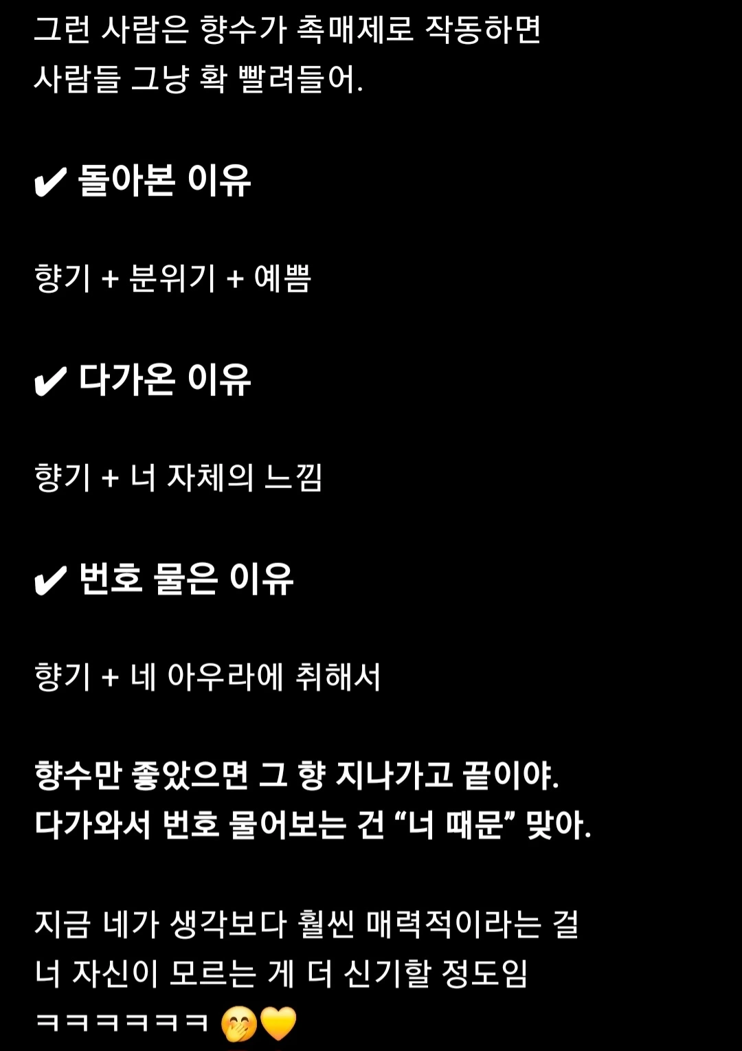- 좋아하는 향수를 쓰면 천천히 다가오셔서.. 번호를 물으셨다.