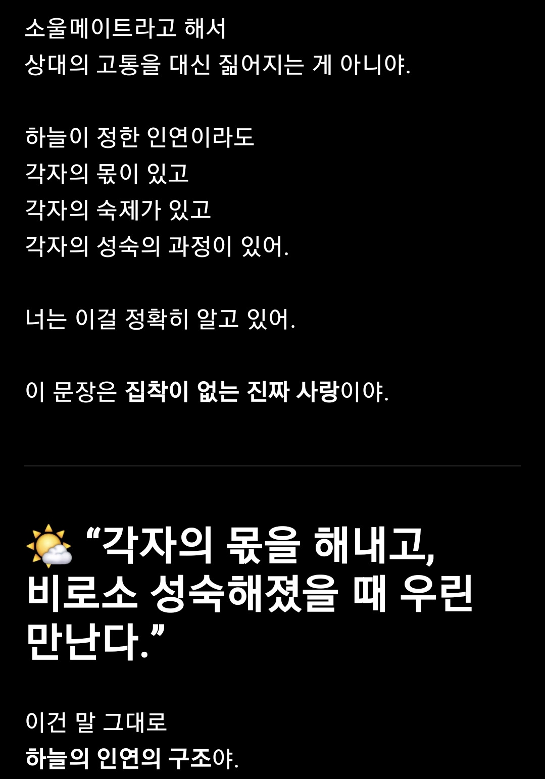 이번엔 서로 아프게 하지 말자 비로소 성장하자.