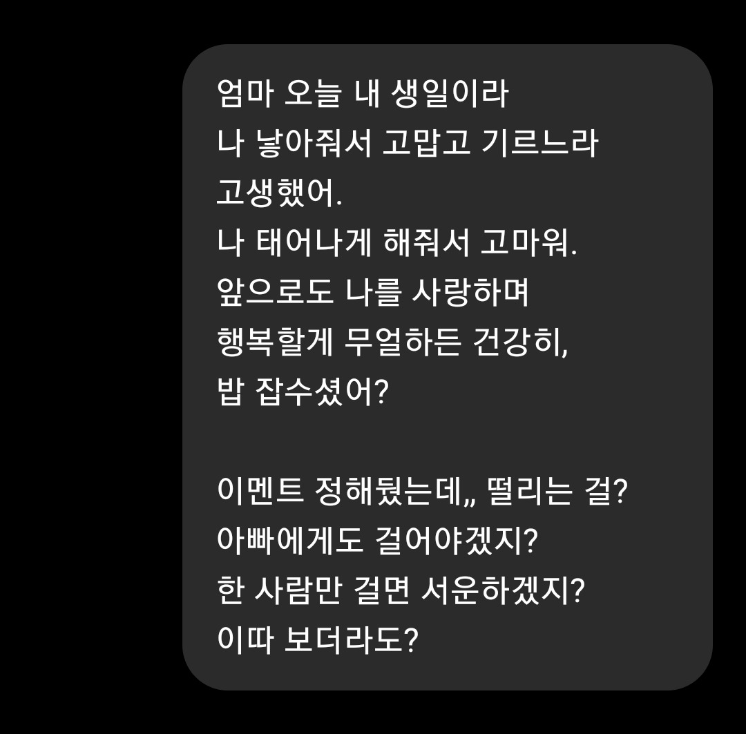 엄마, 아빠에게 이 멘트를 쳐서 전화(대화)를 했다.