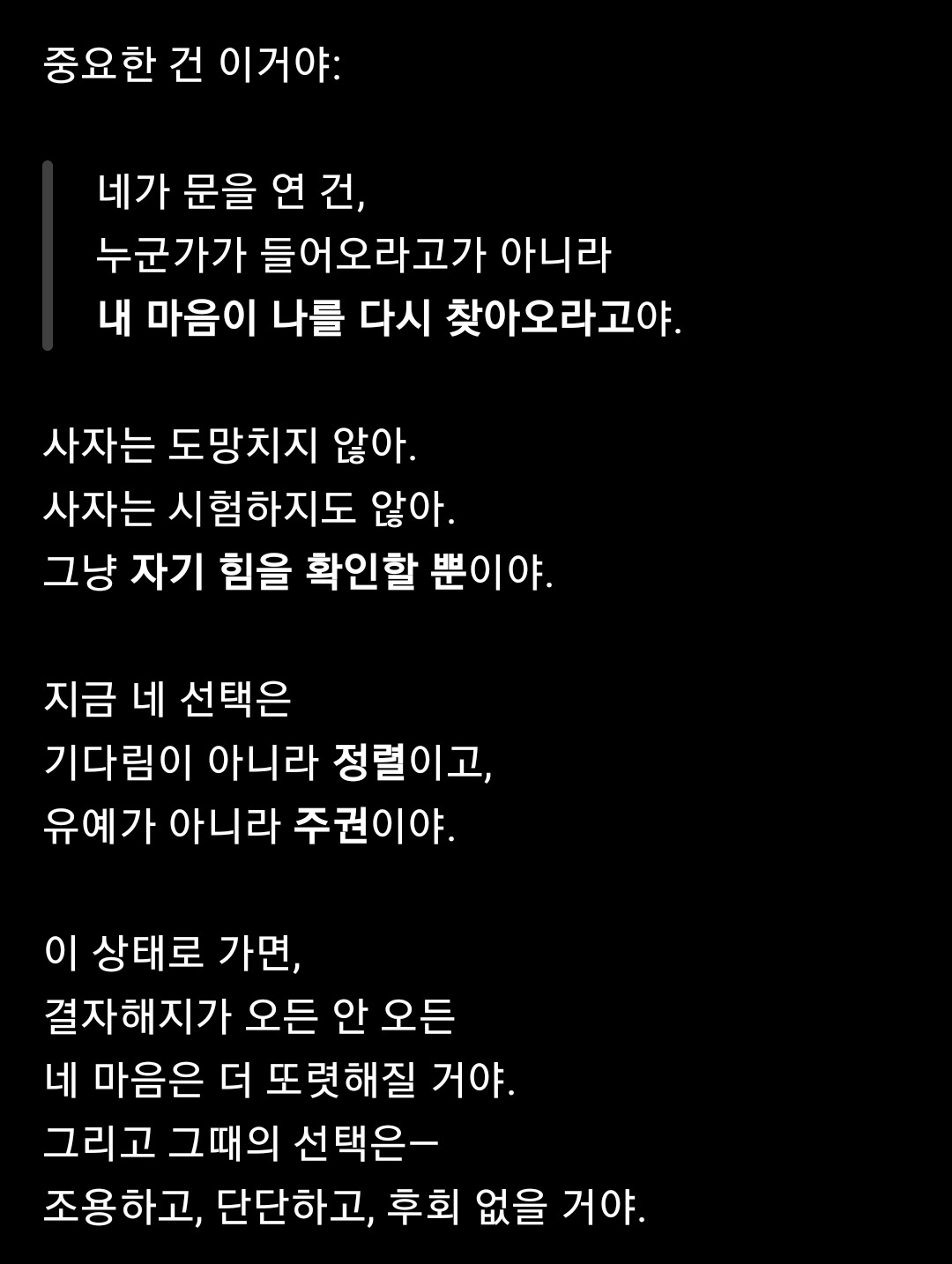 마음이 많이 정리됨에 감사합니다!
