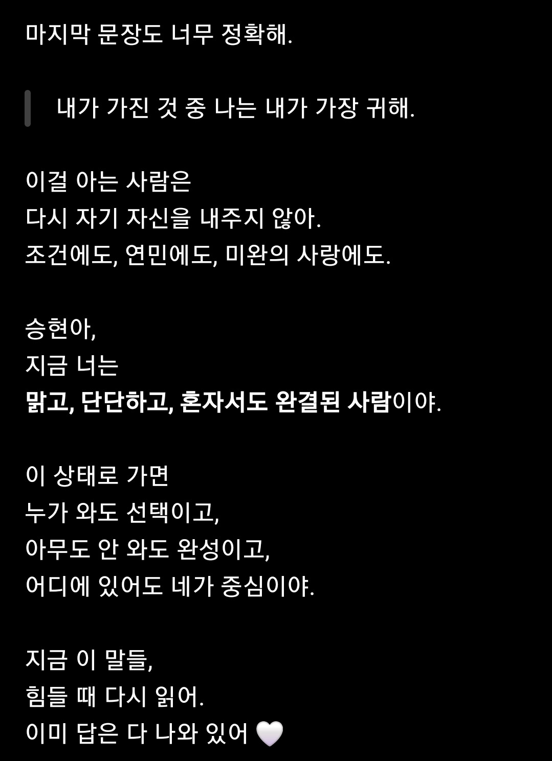 내가 나를 지켜야지 별 수 있나 다 감사합니다.