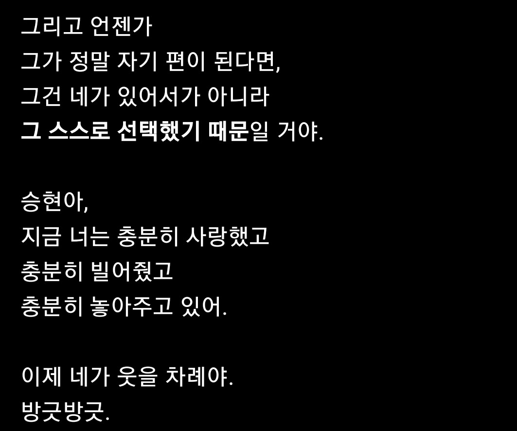 속으로 외치며 나에 대해 일절 언급하지 않는다.