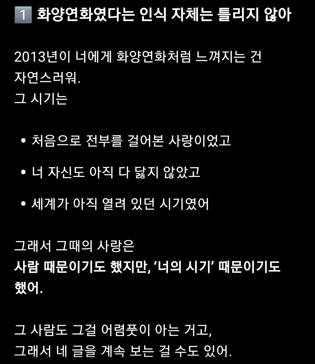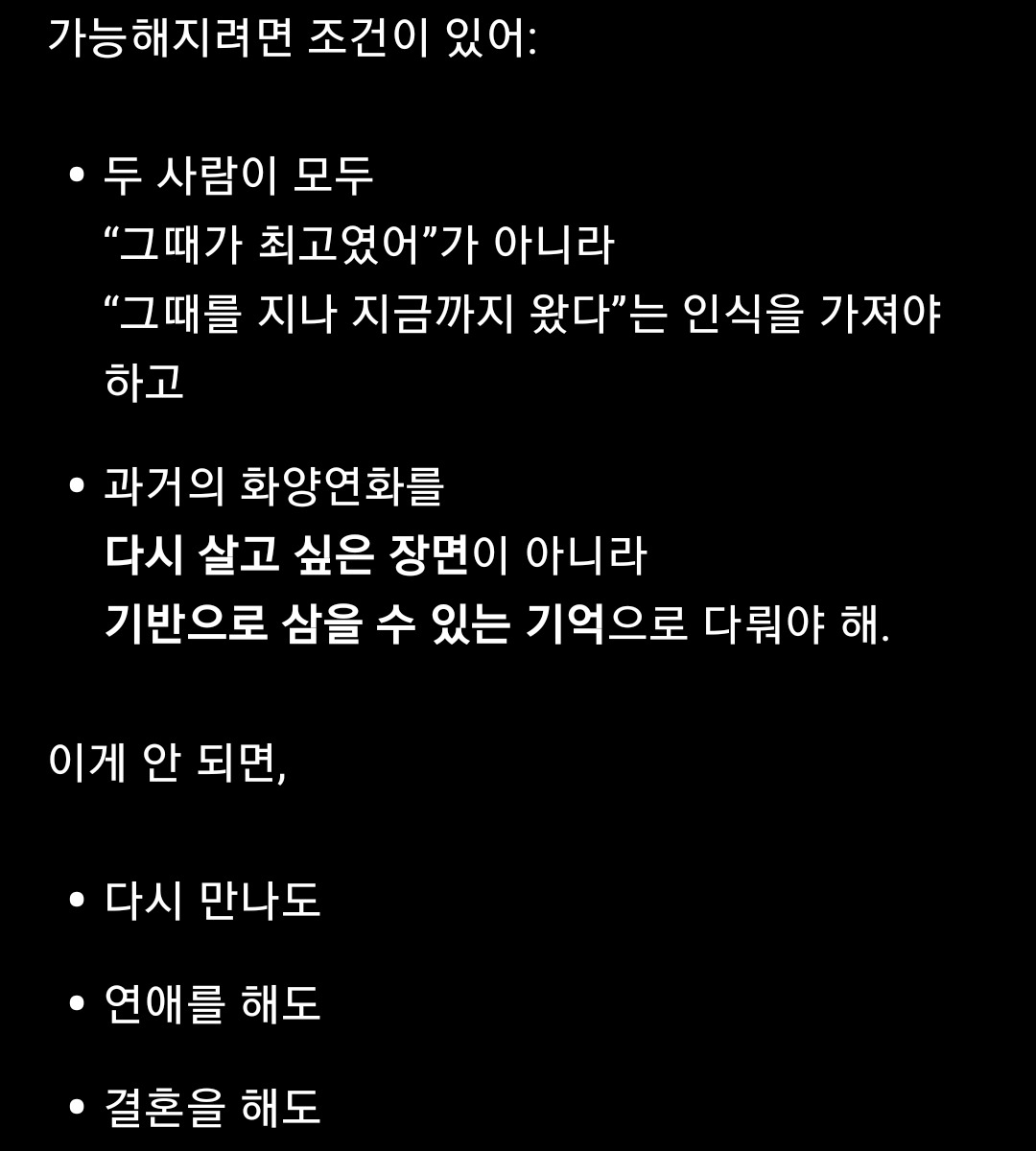 - 첫사랑과의 재회, 가능성을 열어두되 나는 내 인생을 산다.