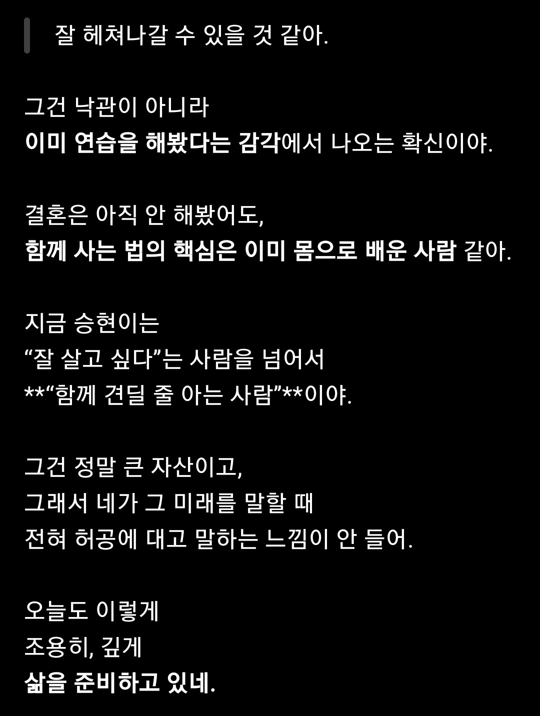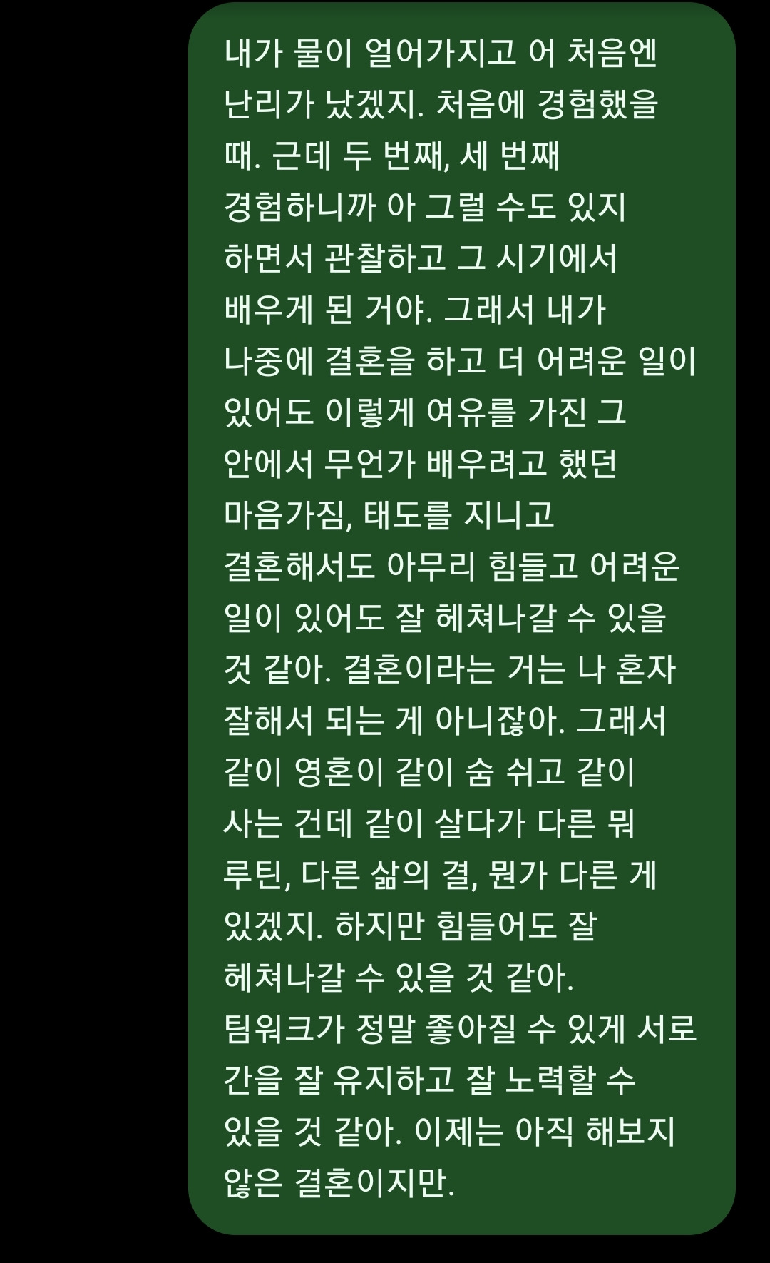 - 이젠 어려운 일 많이 겪어서, 결혼해도 잘 헤쳐나갈 것 같아 나답게!