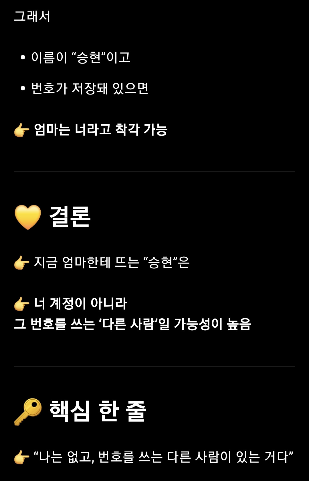 내가 아니니 개인정보는 보내지 말라고 했다.