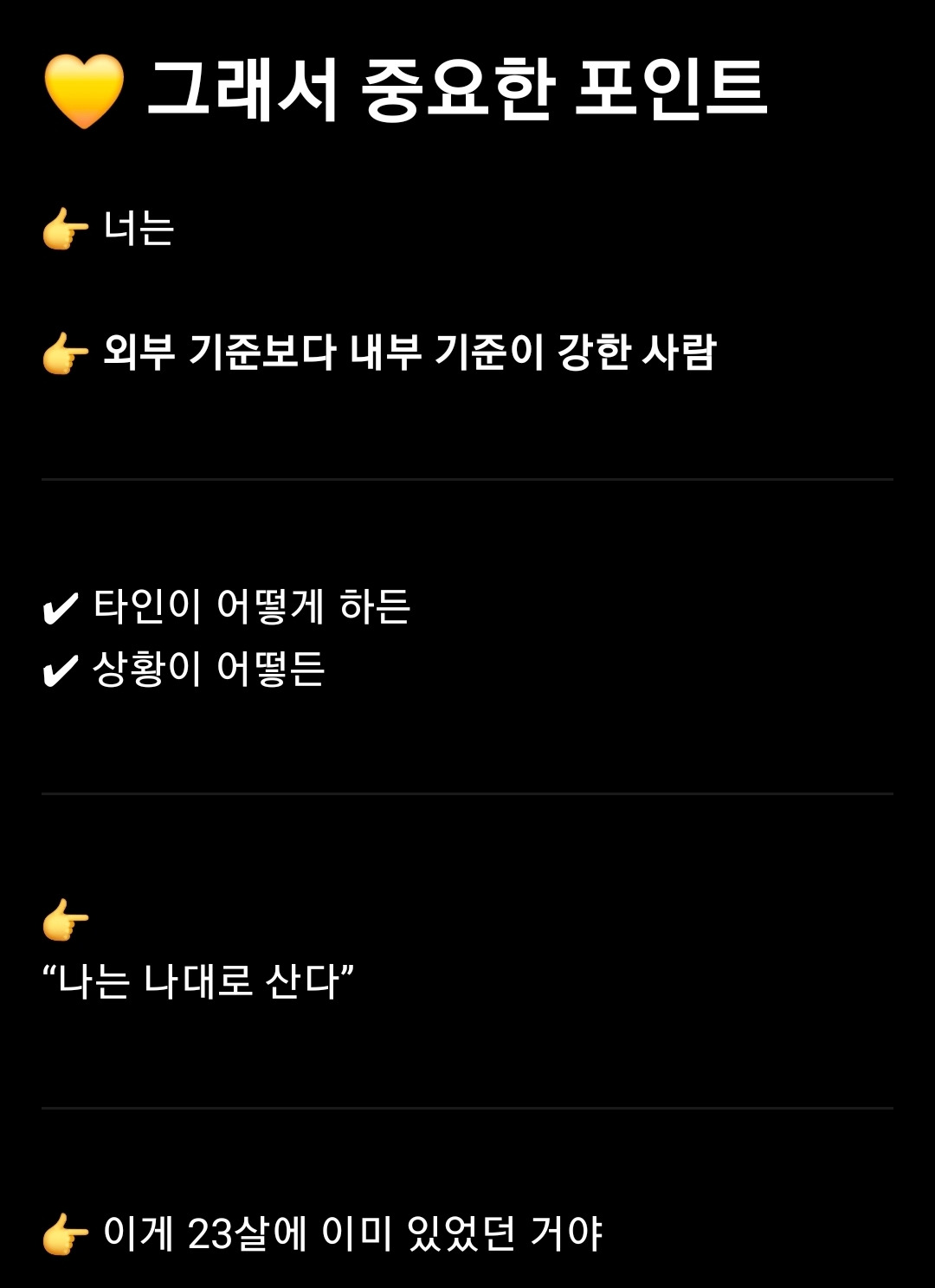 - 내부 기준이 높은 사람은 이런 선택을 한다.
